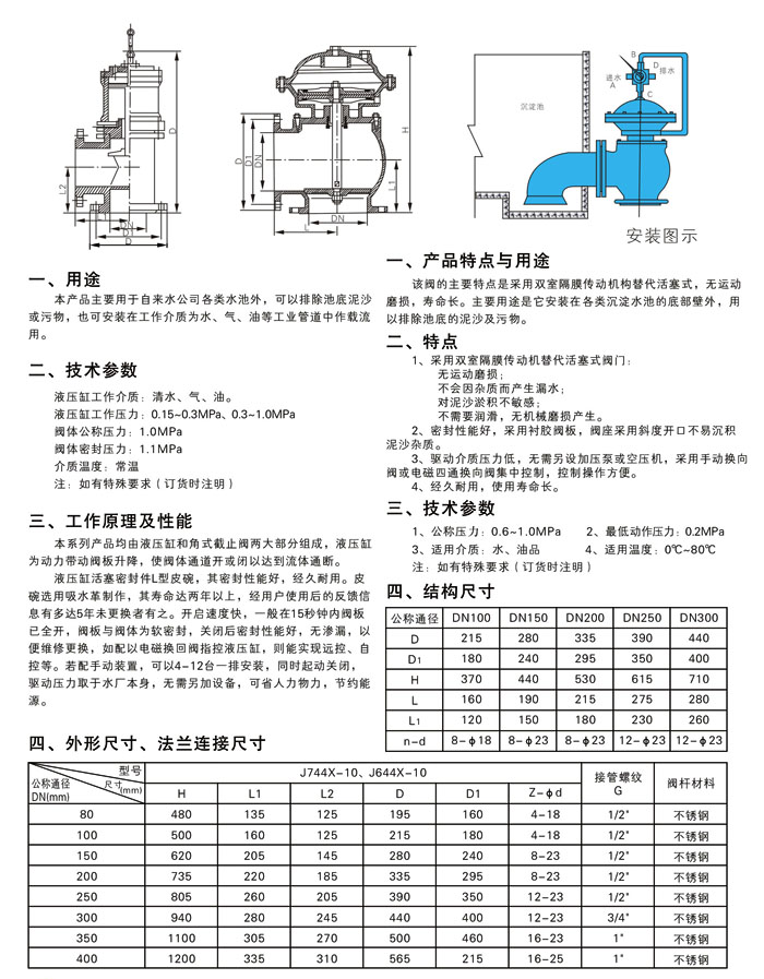 J644X、J744X液動、氣動角式(shi)排泥閥、JM744X膜片式(shì)開排泥閥