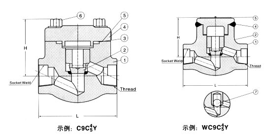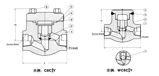 七(qī)、升降式鍛鋼止(zhi)回閥【結構圖】 900Lb~1500Lb