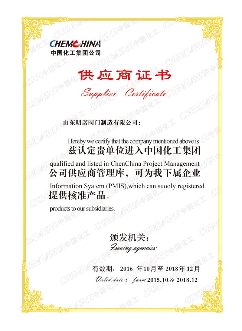 中國(guó)化工集團(tuan)供貨商證(zheng)書