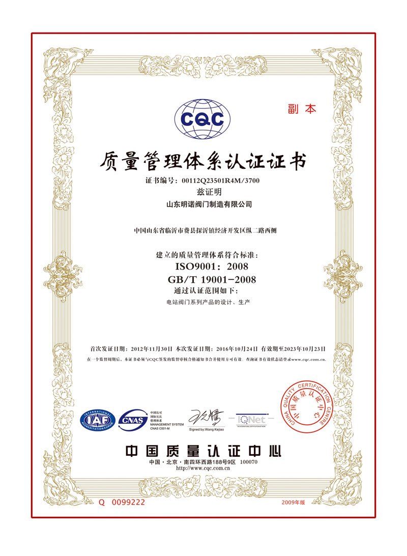 質量管(guan)理體系(xi)認證證(zhèng)書