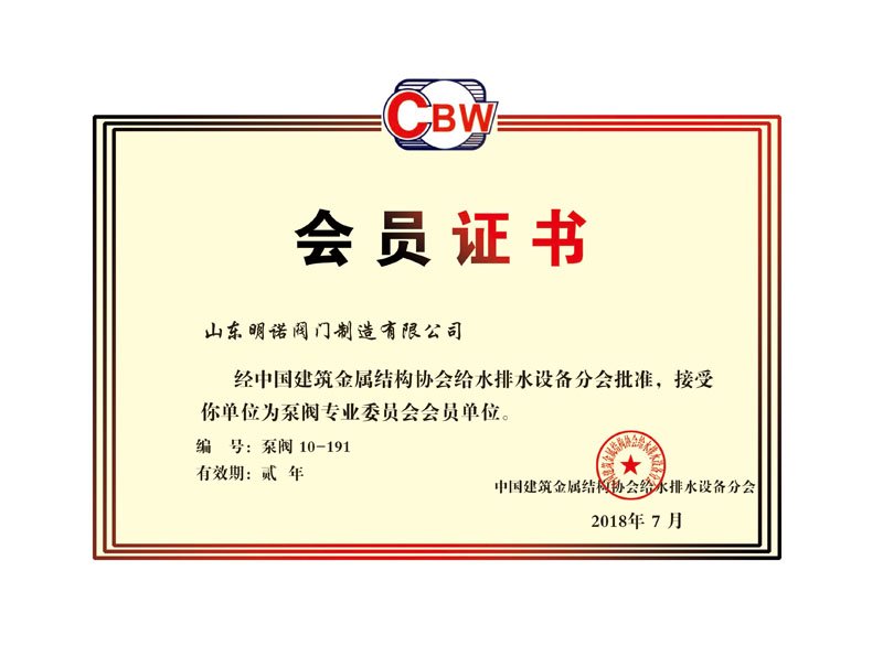 中國建築(zhù)金屬結構協會(huì)會員證書
